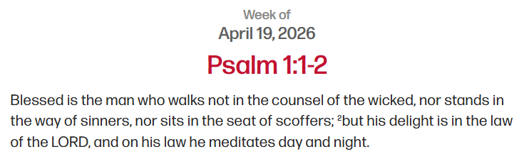 Fighter Verses-- We continue the Fighter Verses Scripture Memory program this year. Make sure to pick up a 2026 Bookmark which gives tips for Scripture memory and our verse for each week. Memorizing Scripture is a great way to deepen your faith and grow in your discipleship in the new year.
